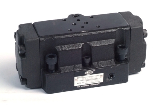 註:電磁引導換向閥是由電磁換向閥和引導換向閥搭配組合,當電磁閥線圈通電時引導換向閥切換引導油流的方向,並以推動引導換向閥軸,因此改變油壓系統油路流的方向。